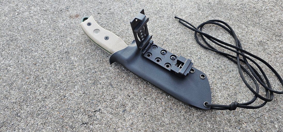 MODULAR SYSTEM, This Sheath is Modular, which allows you to create a Custom rig to fit your Style. Attach a pouch, compass, fullsize Firesteel Holder, Carry Style systems, etc...