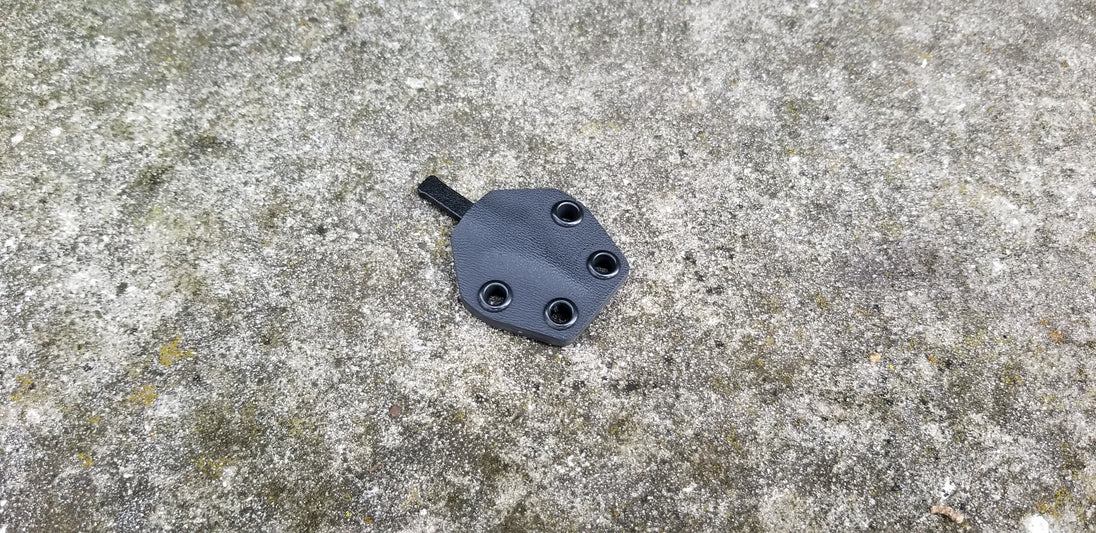 Kydex is .093 thick and assembled with long barreled eyelets for added assembly strength.