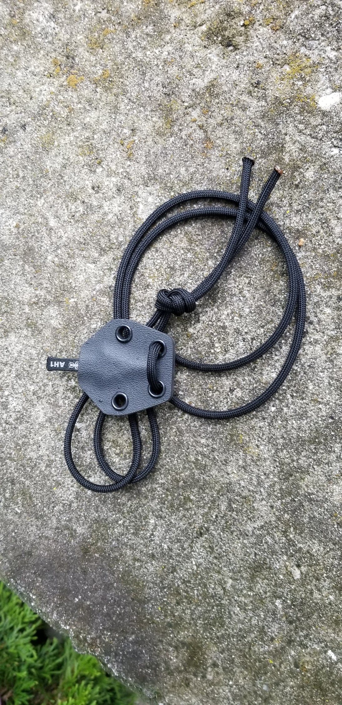 KYDEX SHEATH WITH approximately 3.5' of Genuine (MIL-SPEC) 550 paracord. Excellent for EDC NECK CARRY. And a VERY reliable system that is finally available for this Arrowhead!