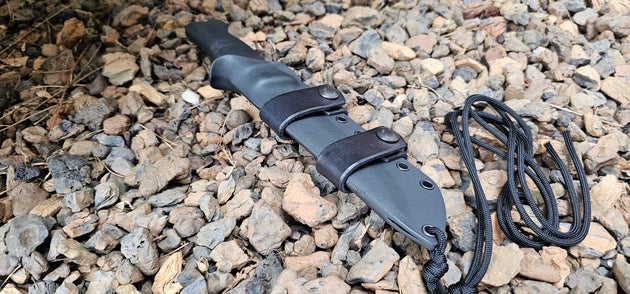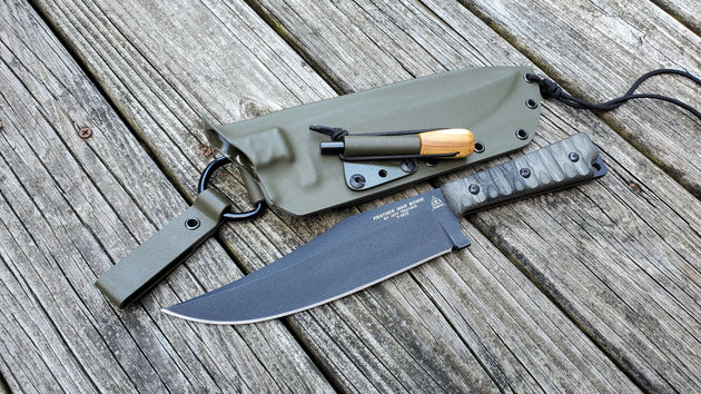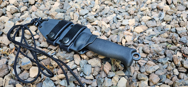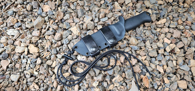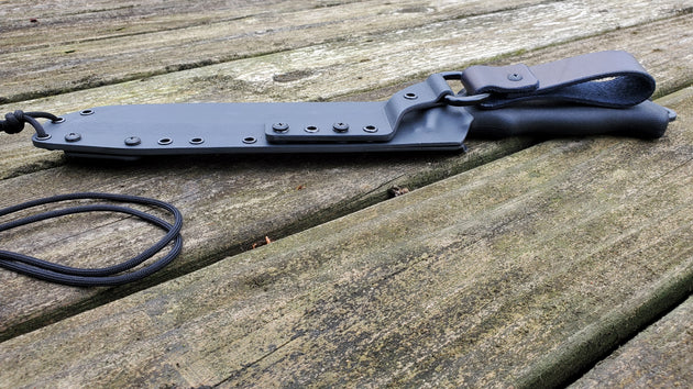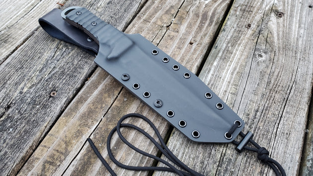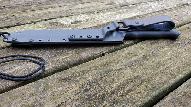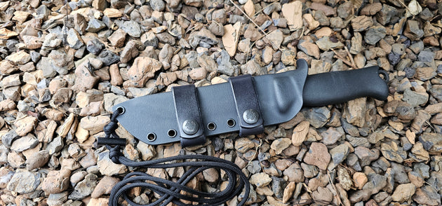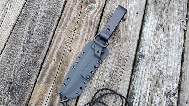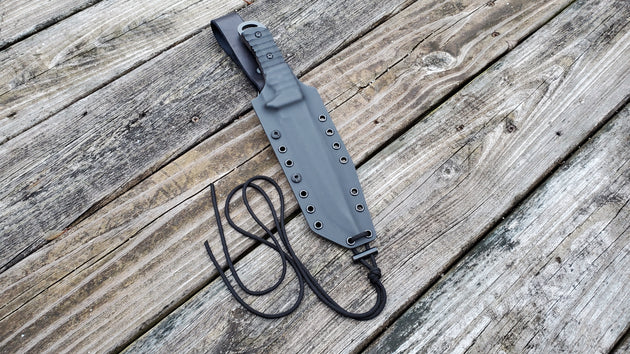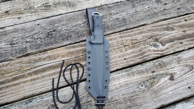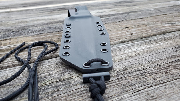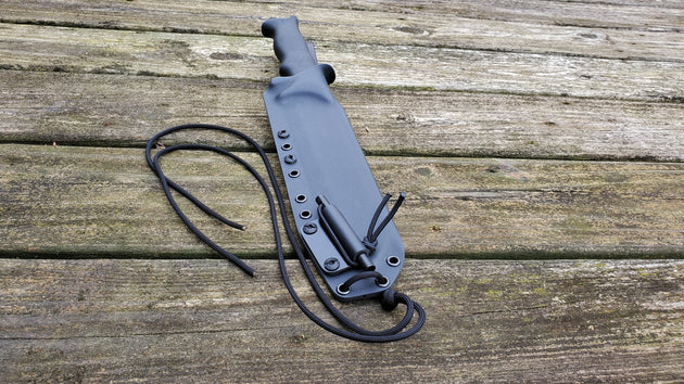 TOPS Prather War Bowie custom kydex sheath, Kydex Dangler Carry,Paracord, Firesteel, Taco style.