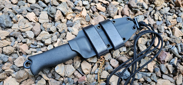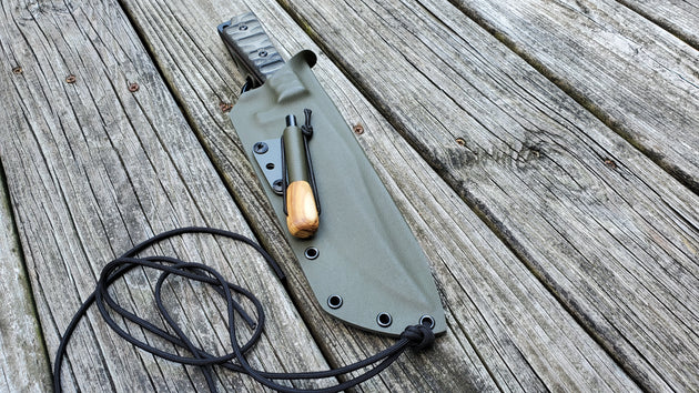 Terävä Jääkäripuukko 110 Custom Kydex, Scout,Neck strap, Mini Firesteel Rod, 550 Mil-Spec Paracord, 2 Scout Carry Straps, Taco Style