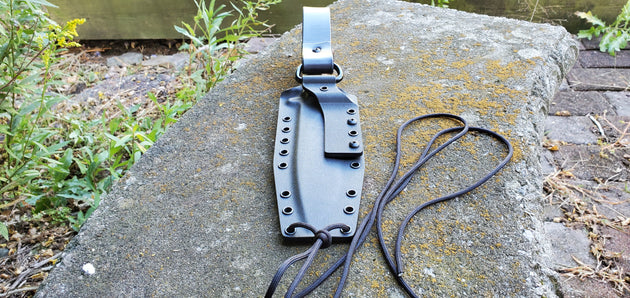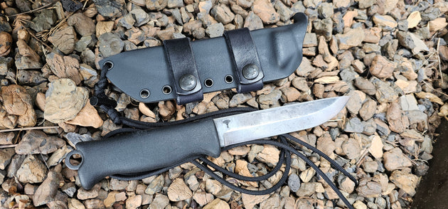 Terävä Jääkäripuukko 240 Custom Kydex Taco, Kydex Leather loop Dangler & FireSteel Holder