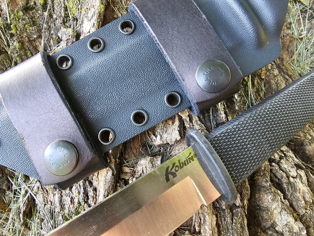 Cold Steel KOBUN custom kydex sheath, Scout Carry, Leather Scout Straps, Mini Firesteel, Paracord, pancake