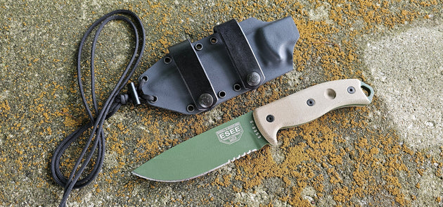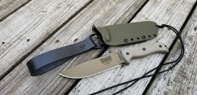 ESEE ESEE-6 Custom Kydex Sheath, Scout Carry, IWB Straps, Mini Firesteel Rod, 550 Mil-Spec Paracord, Pancake