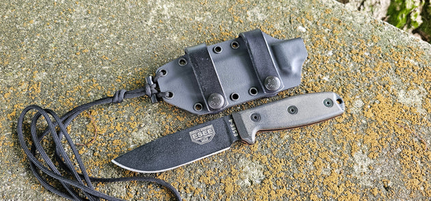 ESEE ESEE-3 custom kydex sheath, Scout Carry, Paracord Lanyard, Mini Firesteel, Pancake