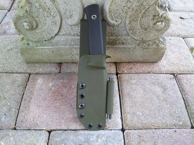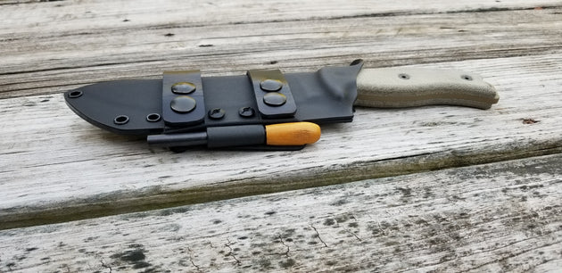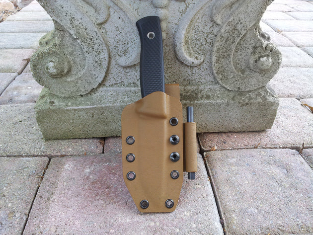 F1 Taco style Kydex Sheath w/ Firesteel Holder and Offset Drop Belt Loop