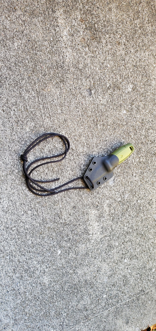 + 3 moreThis sheath is custom made for the Mora Eldris Shown in black. eyelets are spaced 3/4" center to center to attach most aftermarket attachments such as large tek-lok, Molle-loks, MALICE Clips, ect.....Or any or my custom...Regular price From $35.00