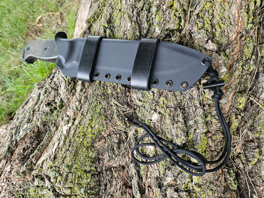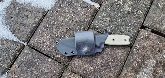 Custom Kydex sheath made for the ONTARIO RAT3 Made with .093 thick Kydex Taco Style sheath Leather Scout Carry Strap with "Pull the Dot" directional Snap for solid security. Leather scout strap is made with 8-10oz...Regular price $55.00 -