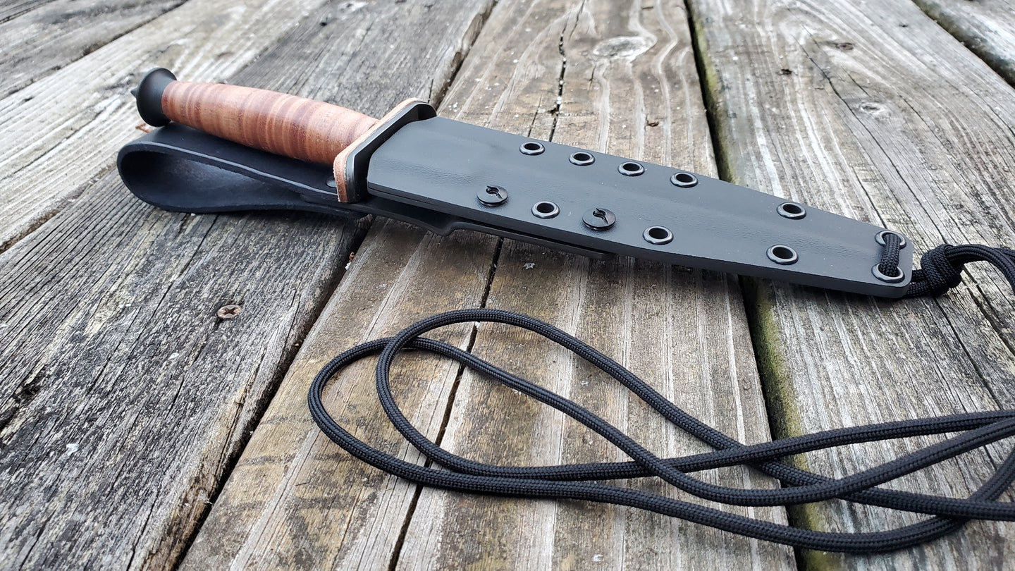 BOKER PLUS " V-42 " Custom Pancake style Kydex Sheath, Leather Offset Drop Belt Attachment