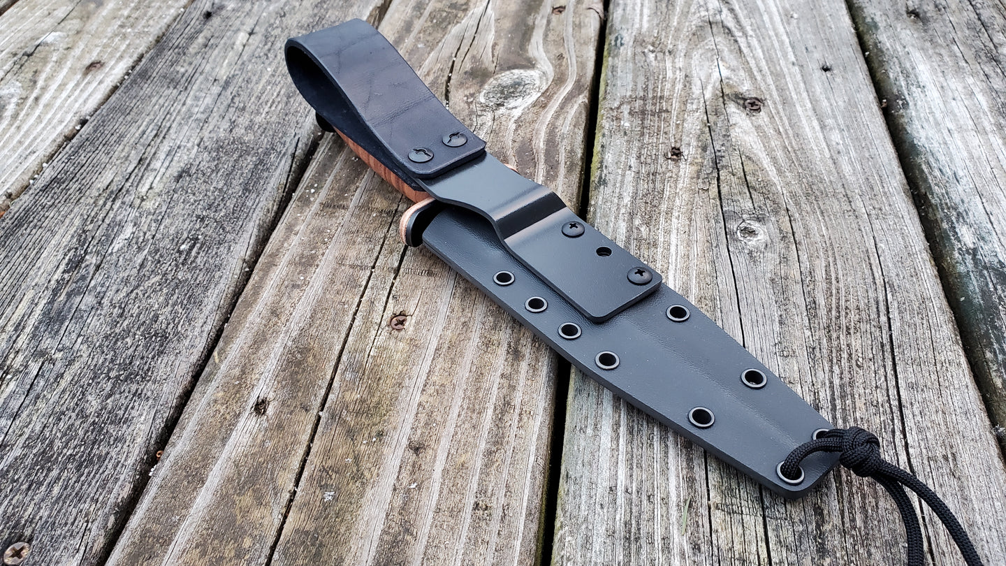 All Armorsheaths sheaths are modular in design. The Sheath is capable of Many Carry Styles and Attachment Configurations. Add a firesteel holder with Firesteel, pouch, compass, flashlight, FirstAid, Fire Starting Kit/Tin, ANYTHING you can fit, including "Piggyback" knife Combinations. l make ANY Attachment you need.