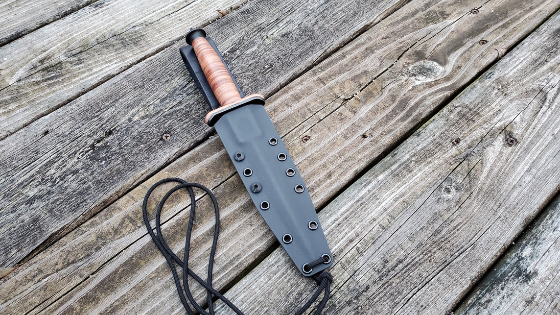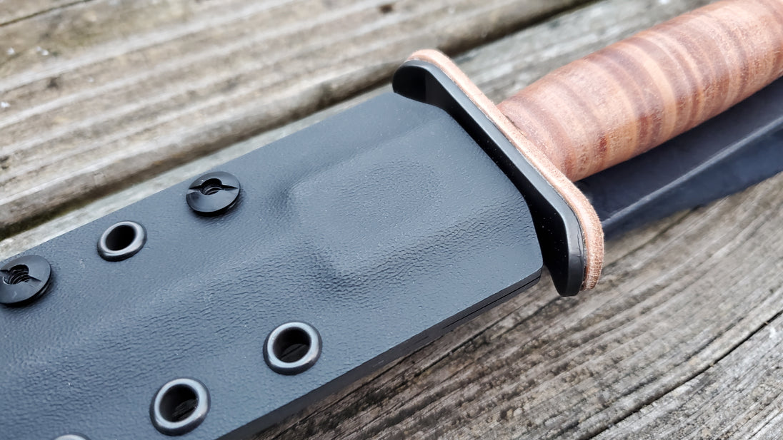Kydex is. 093 thick and assembled with long barrel eyelets for added assembly strength.