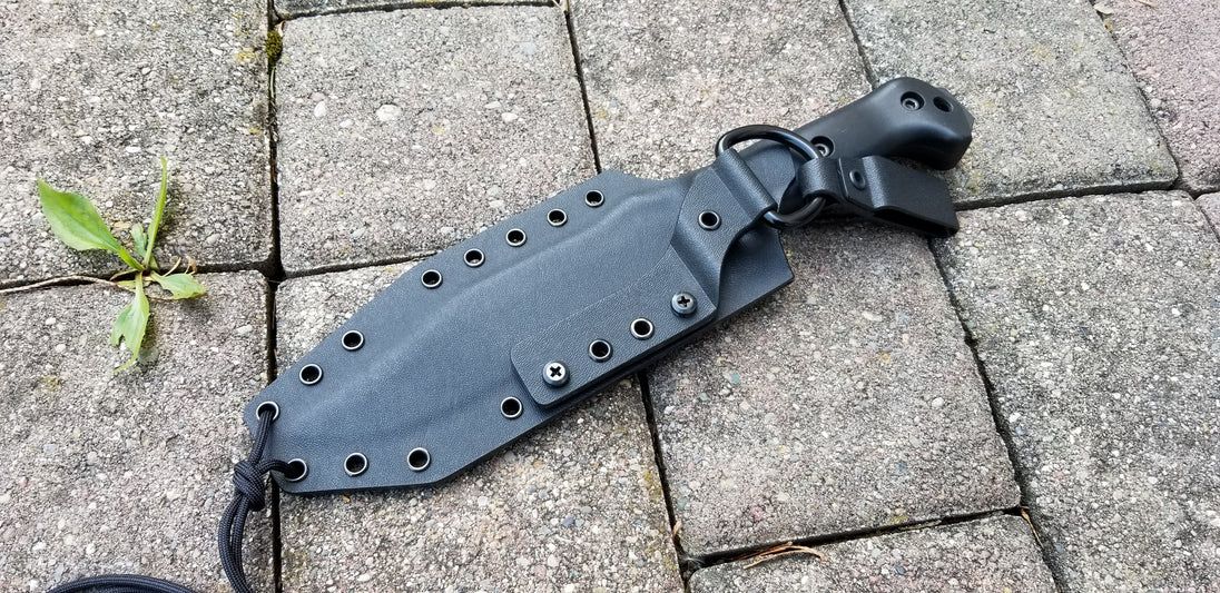 KA-BAR " Big Brother " custom kydex sheath, Dangler Carry, Paracord, Mini Firesteel, Pancake style.
