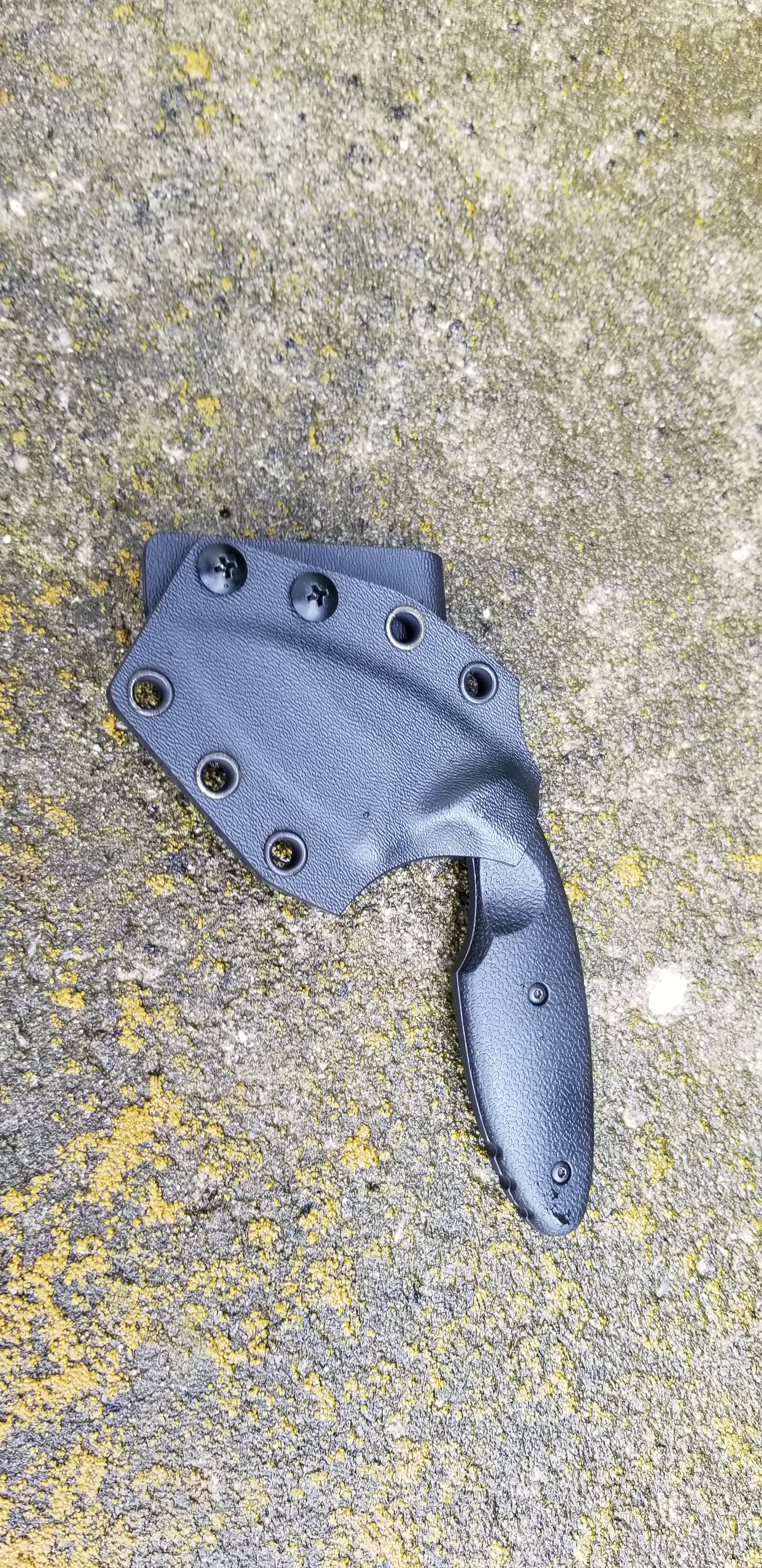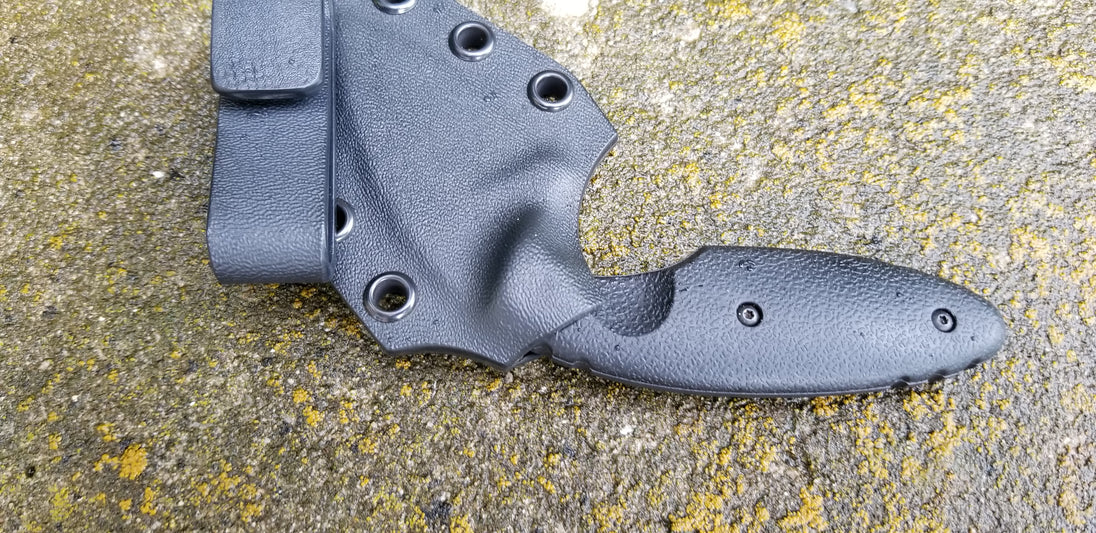 The kydex sheath is made of .093 thick kydex and assembled with the highest quality eyelets on the market. The mounting holes are 3/4" spaced.