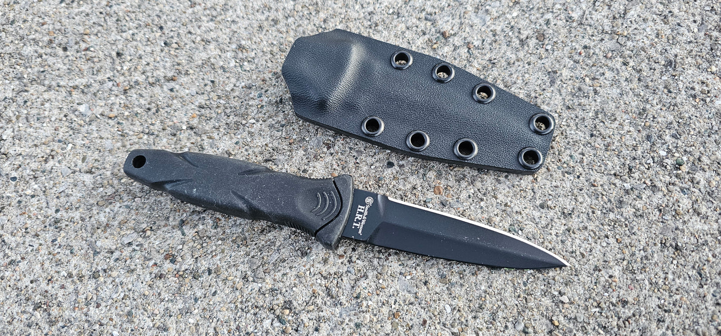 Custom Kydex sheath made for the SMITH AND WESSON S&W H.R.T 3.5" Spear point style blade knife.