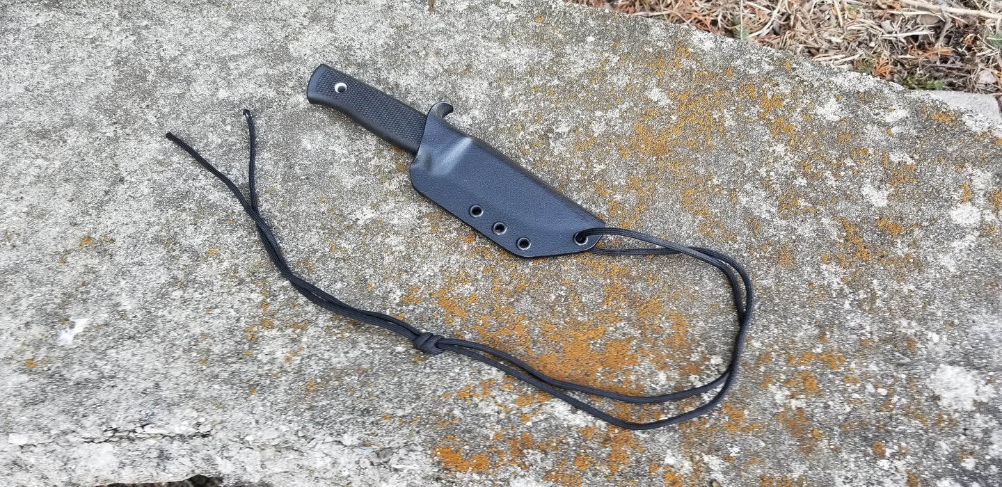 KYDEX SHEATH WITH 4' PARACORD LANYARD.