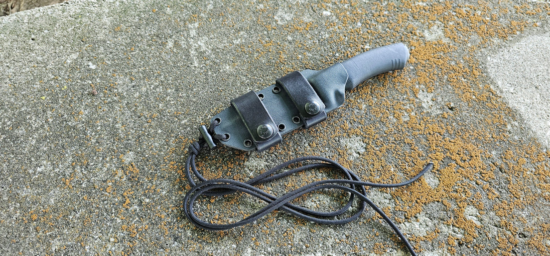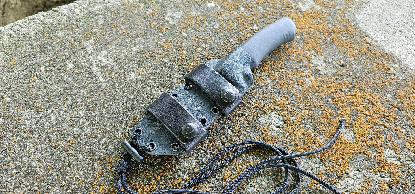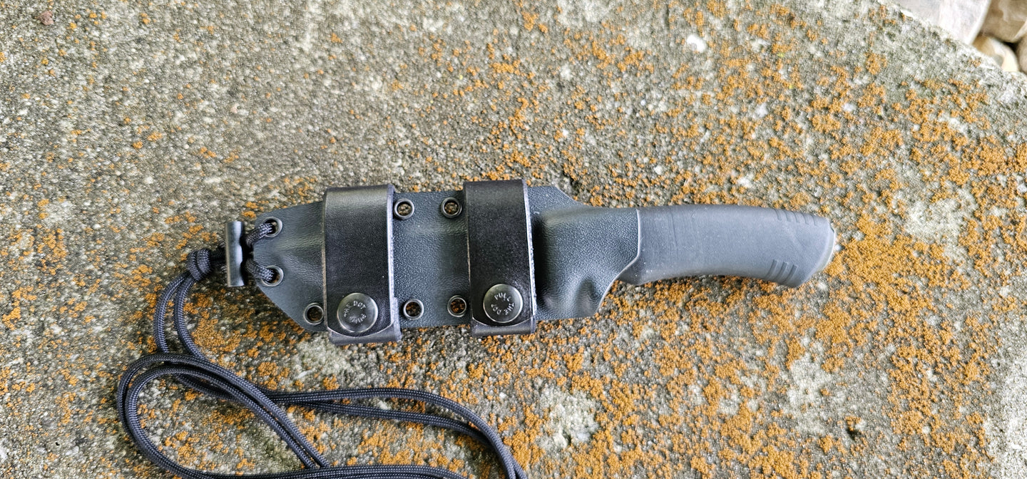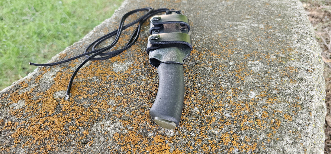 MORA "BUSHCRAFT" custom kydex sheath, Neck & Scout Carry, Leather Scout Straps, Paracord Lanyard, Mini Firesteel rod, Pancake.
