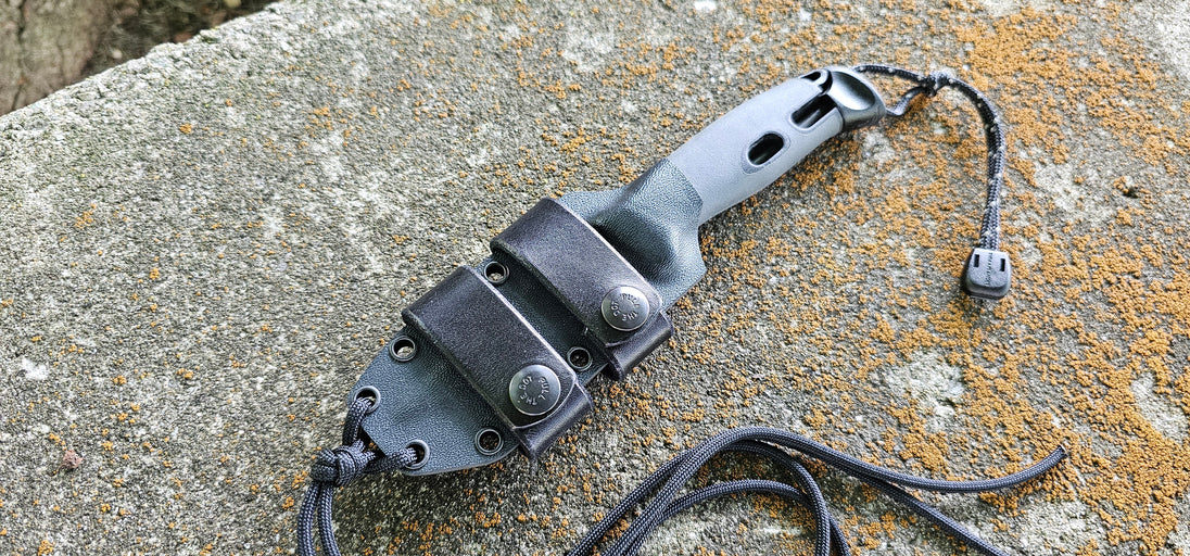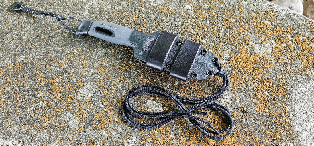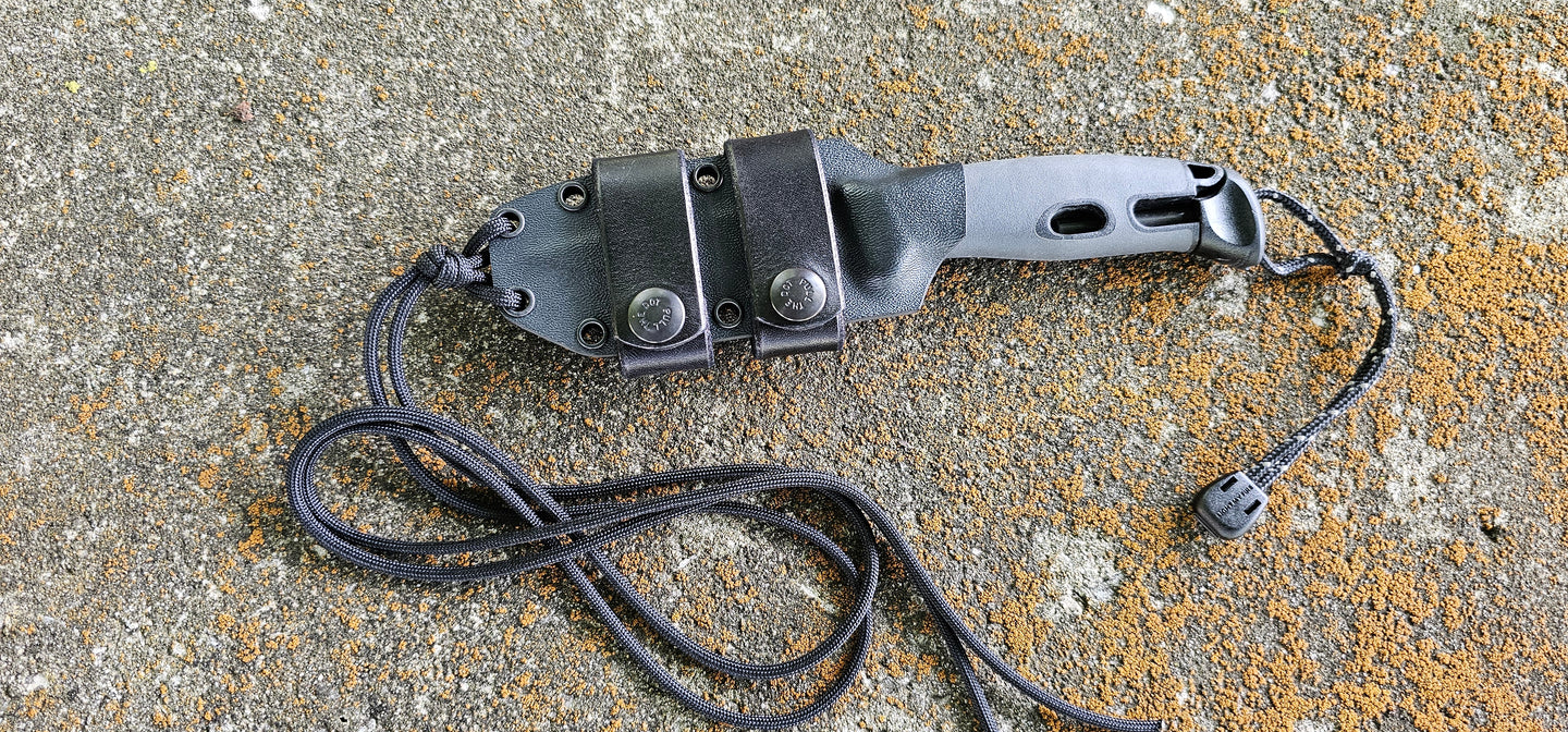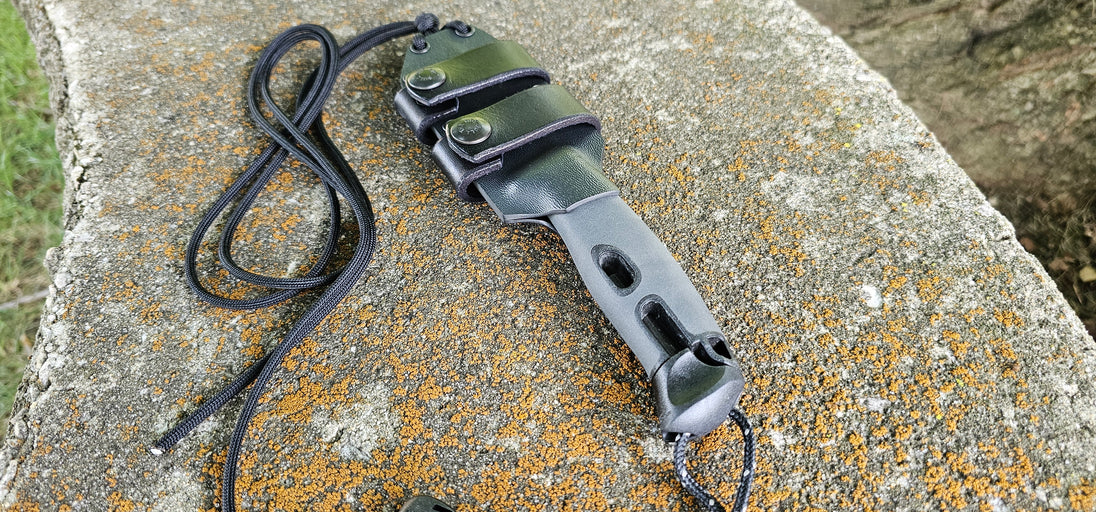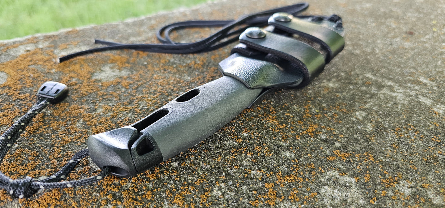 MORA "Light My Fire" custom kydex sheath, Neck & Scout Carry, Leather Scout Straps, Paracord Lanyard, Pancake.