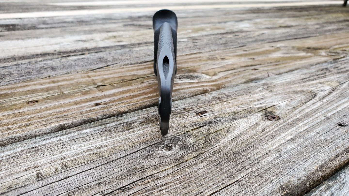 Kydex is .093 thick and assembled with long barrel eyelets for added assembly strength. (.093 thick kydex creates a HARD SHELL that surrounds the Blade for MAXIMUM Protection of the Blade when compared to the thinner materials. The thin kydex will flex and collapse much more easily which does NOT help with blade protection! With flex and the extra "softness" in the thinner materials, there is a higher risk of Blade Rubbing and just flex of the blade if sitting on, or anything else that can change the shape of the sheath, even if ran over the thick kydex will protect the knife much better! A thicker .093 kydex has less flex due to the stiffness and MORE retention security. Impressions made with the .093 will maintain its integrity giving the knife a "hard case" and solid retention.