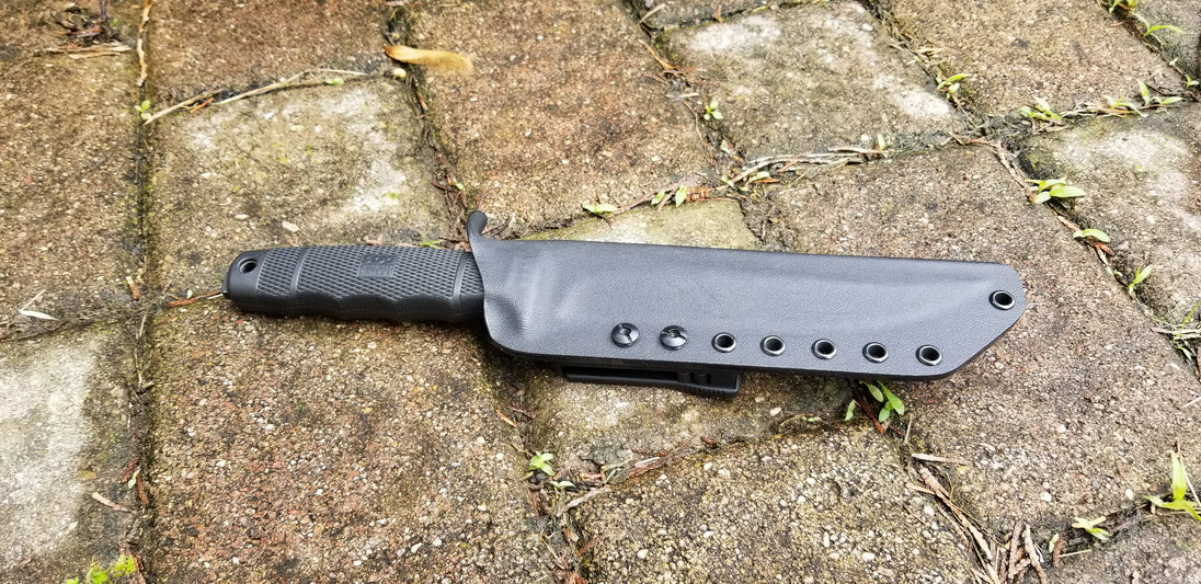 Kydex is. 093 thick and assembled with extra long barreled eyelets for added assembly strength.