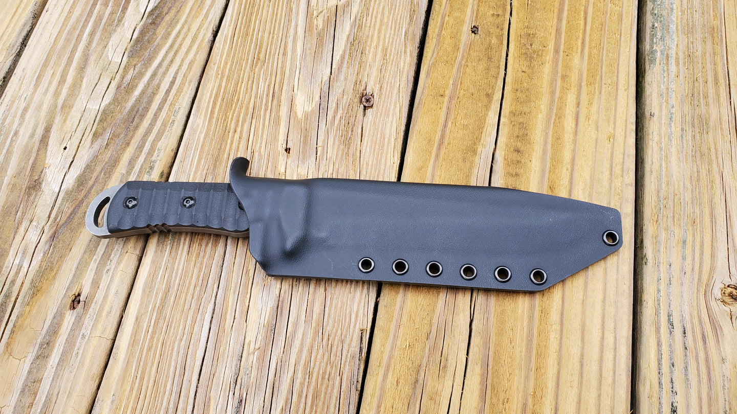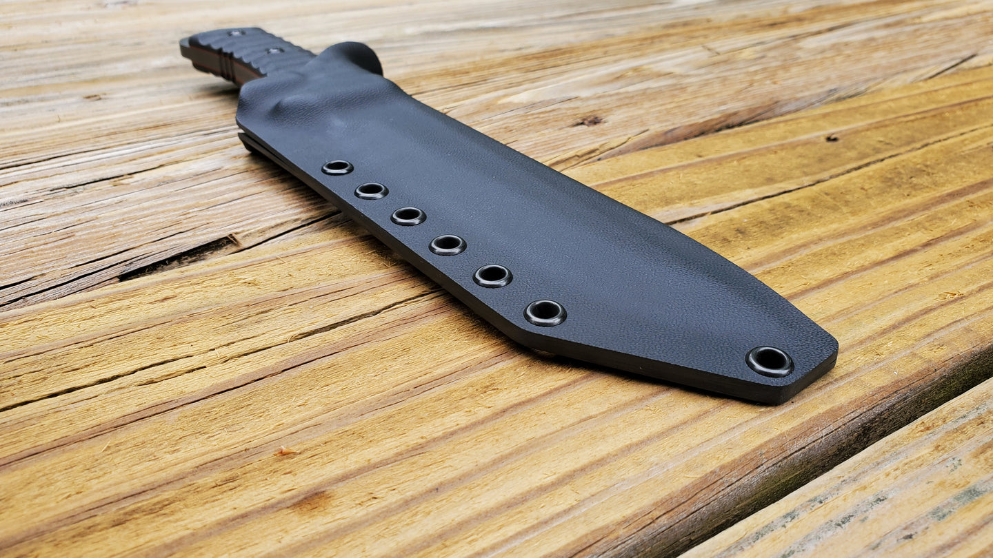 These are custom made and require time to make. I do not keep ready made sheaths due to custom upgrades and requests that customers ask for often. I AM a "CUSTOM" Kydex Craftsman, NOT a "FACTORY" that churns out Quantity. My Focus is "One Sheath at a time"... I Work Alone, not depending on someone else to help complete a Sheath, I finish to the last Eyelet with precision.