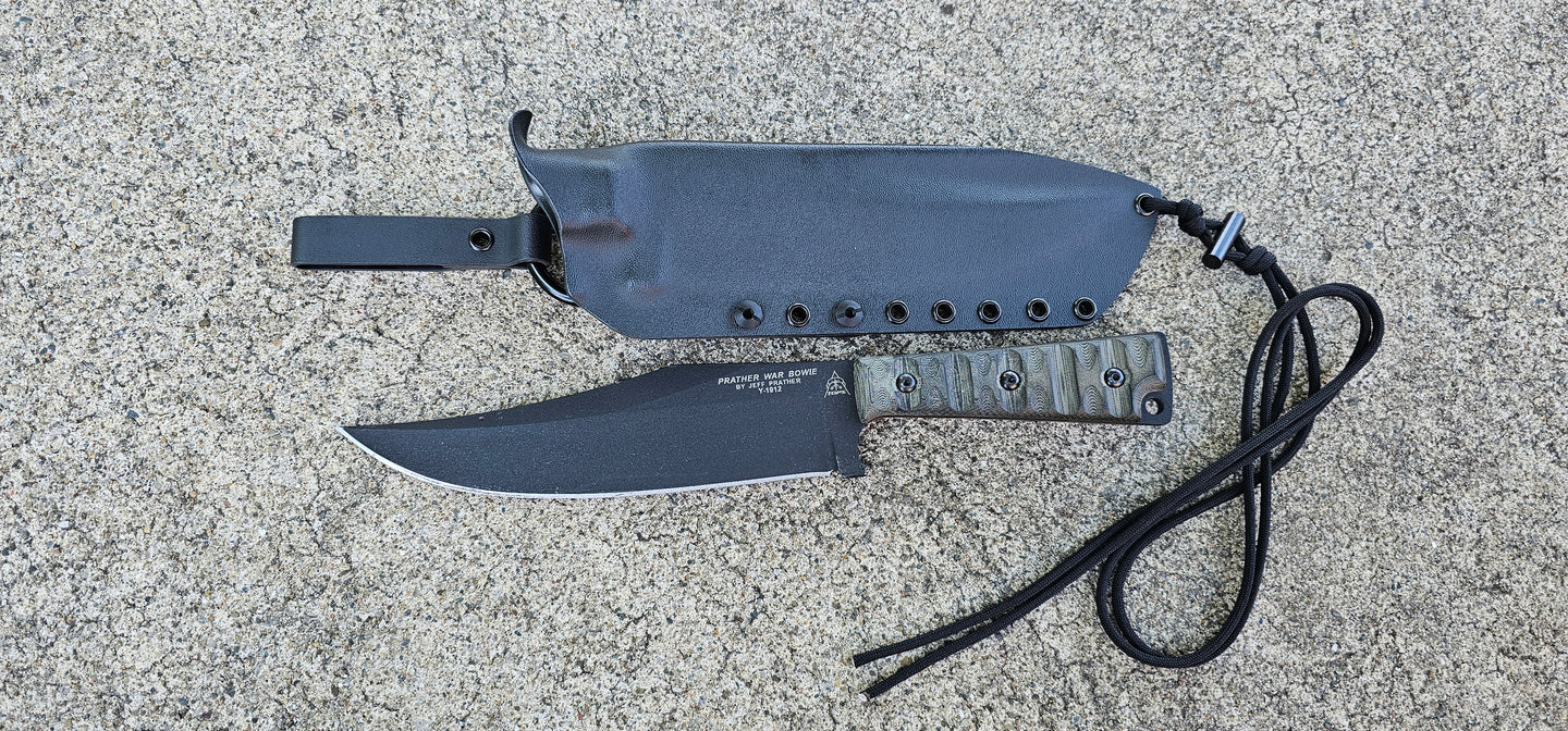 Custom Kydex sheath made for the TOPS PRATHER WAR BOWIE knife.