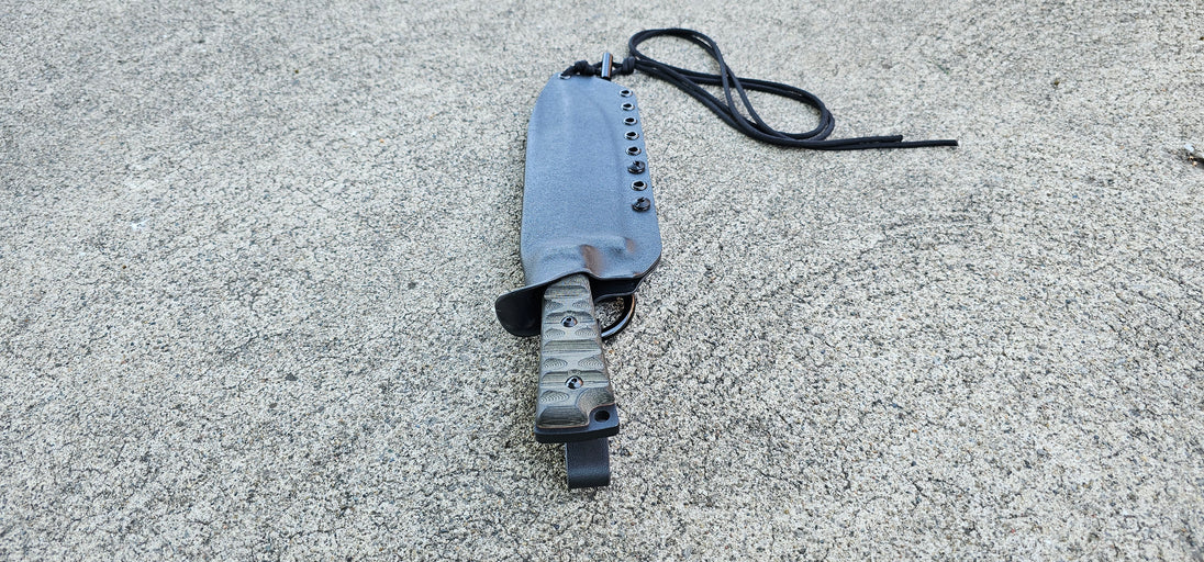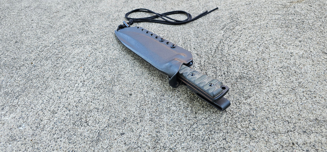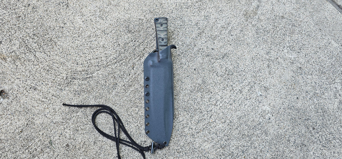 TOPS Prather War Bowie custom kydex sheath, Kydex Dangler Carry,Paracord, Firesteel, Taco style.