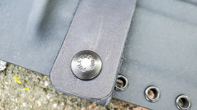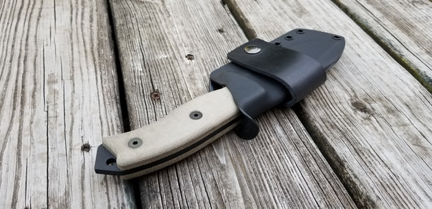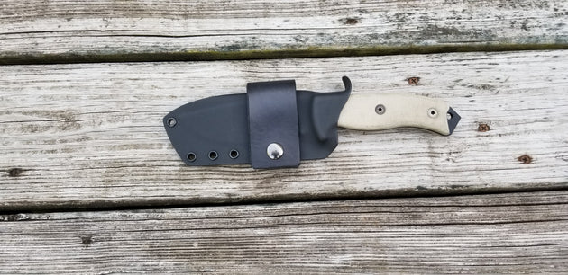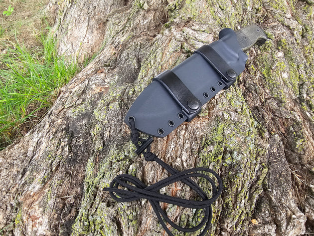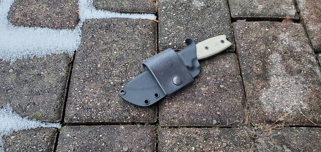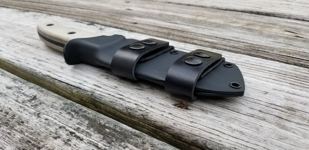 Ontario RAT-5 Taco Style kydex sheath (Split thumb ramp style), Single leather scout carry loop