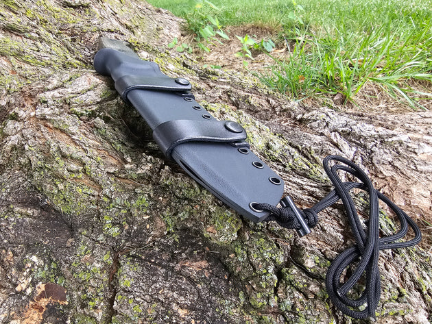 Ontario RAT-5 custom kydex sheath, single leather scout carry loop