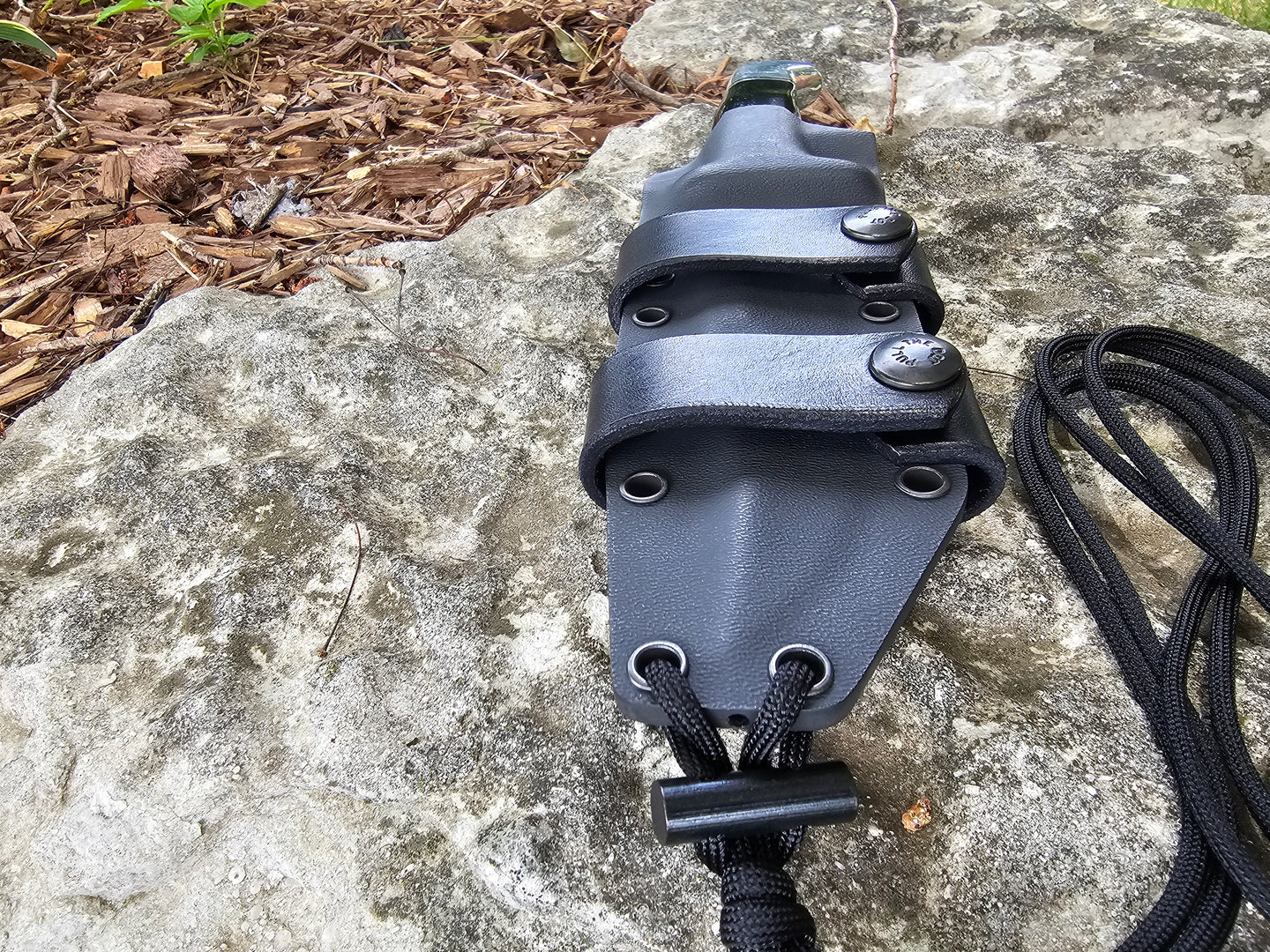 BUCK THUG custom Taco style kydex sheath with Leather looped Dangler