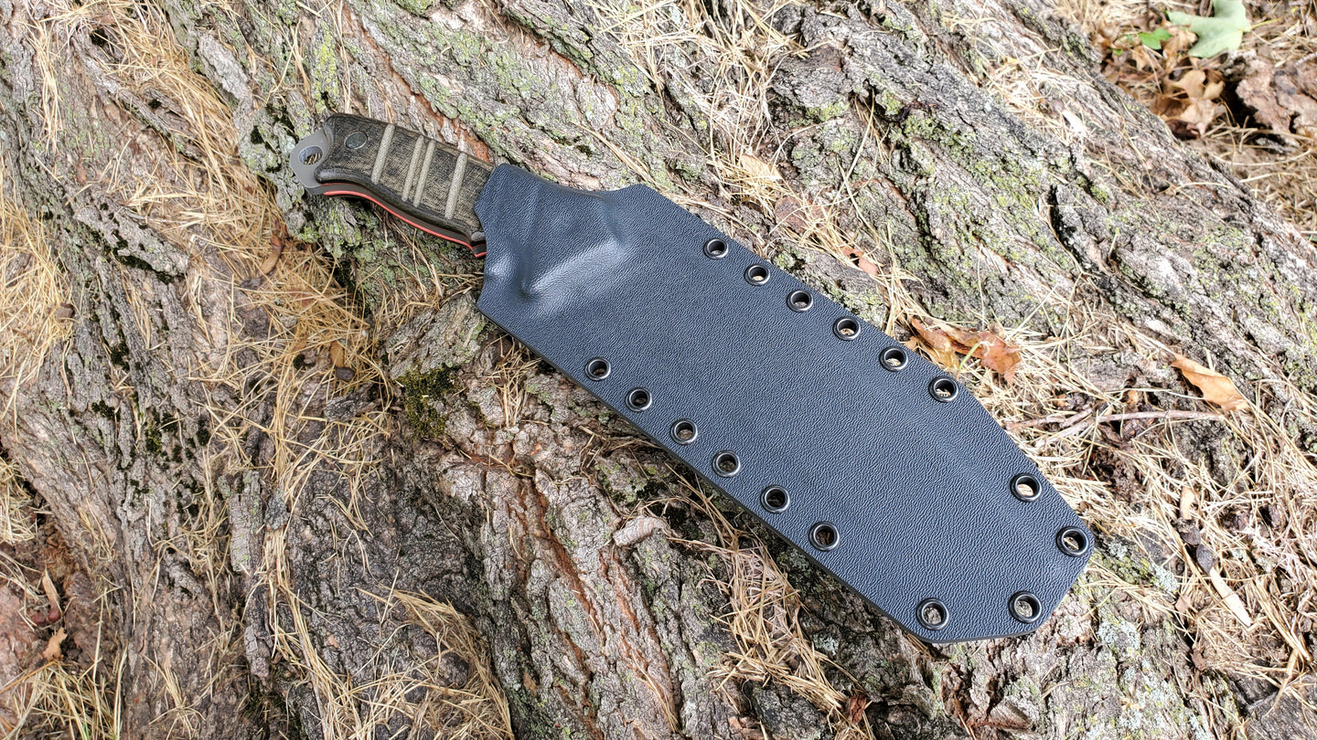 Kydex is. 093 thick and assembled with long barreled eyelets for added assembly strength.