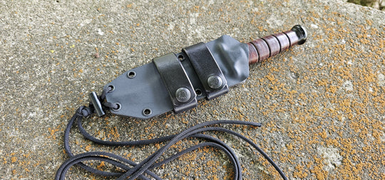 KA-BAR 1250 series USMC "Short" "Shorty" custom kydex sheath, Scout Carry, Paracord Lanyard, Mini Firesteel, Pancake