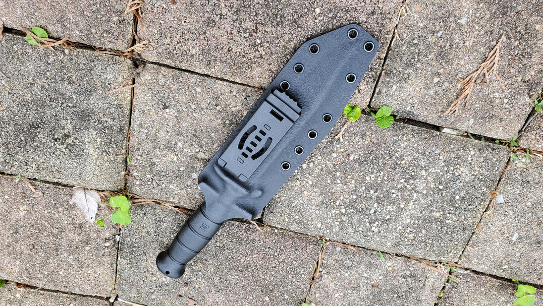 This Sheath is a Major improvement over the Factory Issued Sheath. This Sheath is designed with Superior Retention without having to Struggle getting the knife out like you do with the Factory Sheath. This Sheath is designed for Tactical/Survival duty, with Super Quick Deployment, and locked when Not in use! Mounts inverted and Scout with excellent Retention, using proper attachments. The "Perfect" sheath that should have come with the knife in the first place!