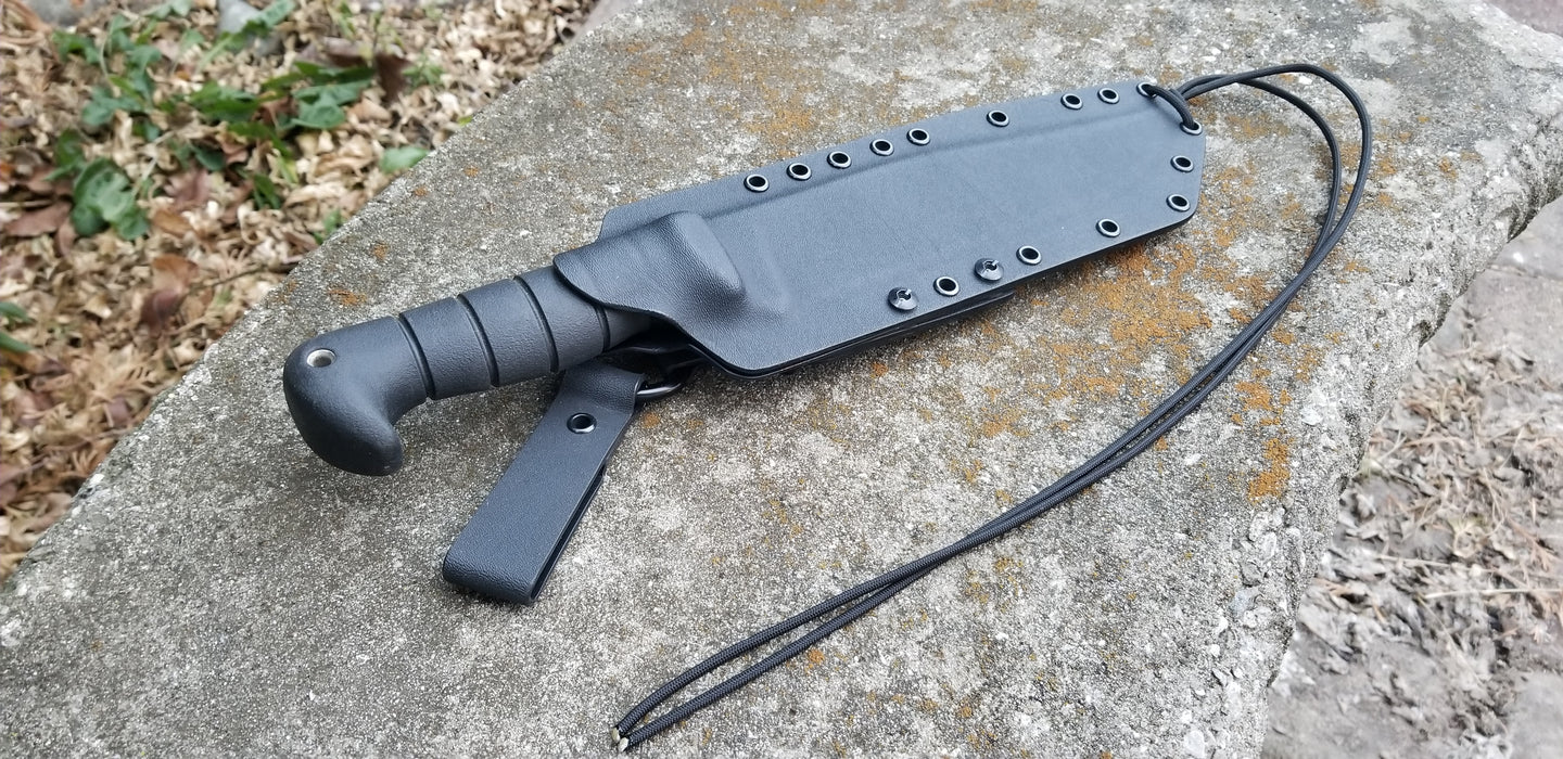 KA-BAR " Big Brother " custom kydex sheath, Dangler Carry, Paracord, Mini Firesteel, Pancake style.
