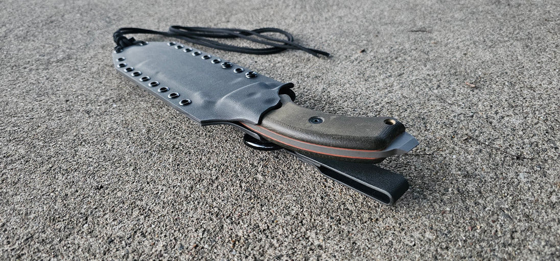 RETENTION is rock solid. This is due to the detailed impressions made during the heat and Molding process. Knife Snaps in Place. No Velcro or button snaps to deal with. THIS SHEATH IS DESIGNED TO BE CARRIED ON A BELT, BUT CAN BE CARRIED IN ANY STYLE WITH THE PROPER ATTACHMENTS INSTALLED. Kydex sheaths are "retention" style. The retention should be fairly firm and NOT loose! The retention I use allows the user to carry the rig in Horizontal (scout) carry and Inverted (upside-down, knife blade tip pointing up, handle pointing down) carry without worry of the knife falling out!